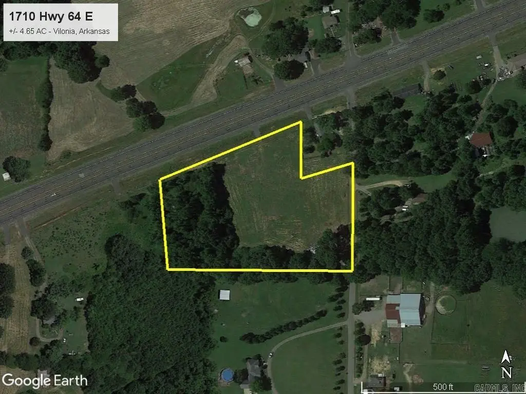 Nice vacant property with high visibility near Vilonia. This +/- 4.65 acre tract has +/- 475 feet of Hwy 64 frontage and an additional +/- 330 feet of frontage on Center Point School Rd. Property is partially cleared and can facilitate a wide range of uses.